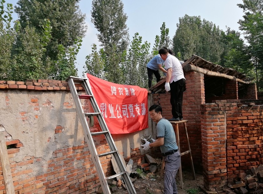 貧困戶魏澤美家是博農(nóng)乳業(yè)公司對(duì)口扶貧幫扶戶,公司黨支部了解到魏澤美家中廁所年久失修,給其生活造成不便的實(shí)際情況,經(jīng)過研究,決定發(fā)揮公司支部黨員水電、建筑等人才優(yōu)勢(shì),組織黨員直接參與其廁所整修工作。30日下午,乳業(yè)公司黨員12人克服天氣炎熱、工作環(huán)境條件復(fù)雜的多重困難,全身心投入到廁所整修工作中,有的撤除房頂,有的焊接梁架,有的開挖水溝,有的連接電路,用整整一下午時(shí)間,完成了房頂撤除更換、連通水電的任務(wù),幫扶工作受到貧困戶魏澤美的交口稱贊。